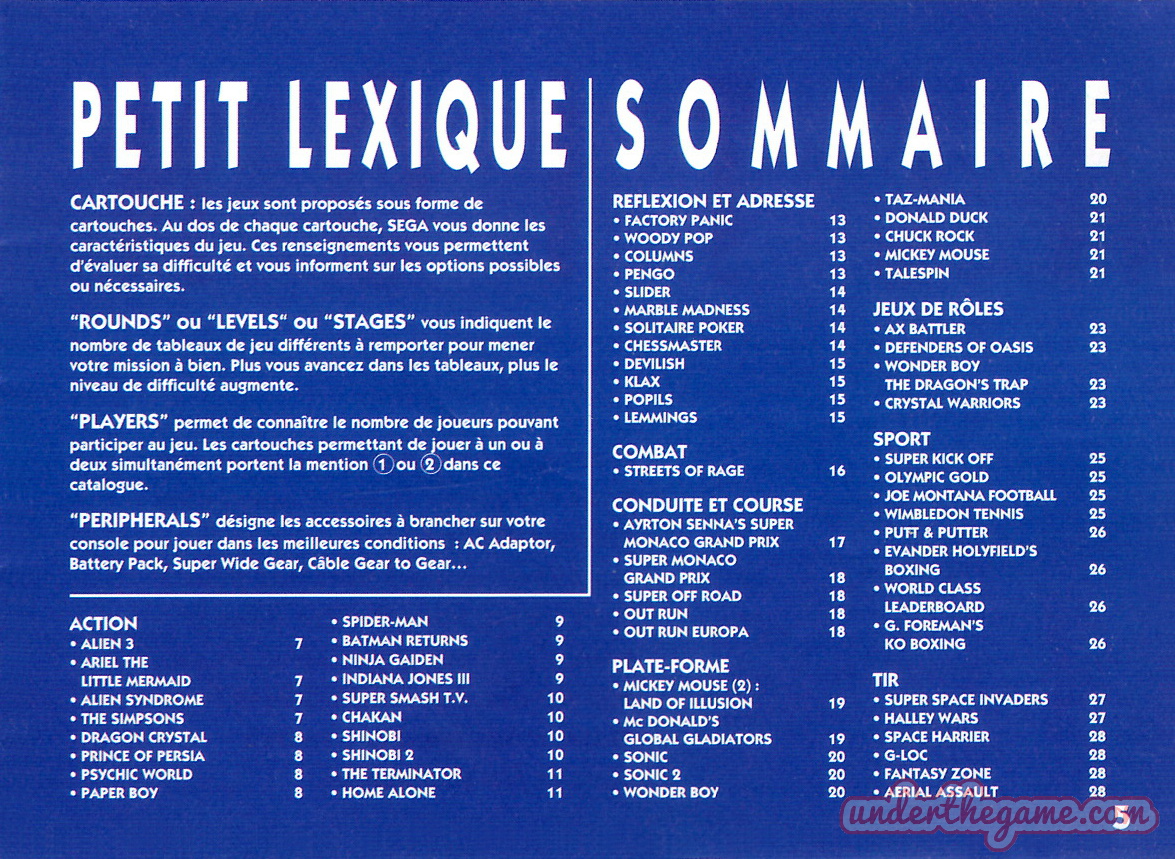Titre : Game Gear – Les Jeux 1993 – Sujet : Jeux Sega Game Gear – Date : 1993 Langue : Français – Nombre de pages : 32 pages – Support : Catalogue – Dimensions : 15 x 11 cm
