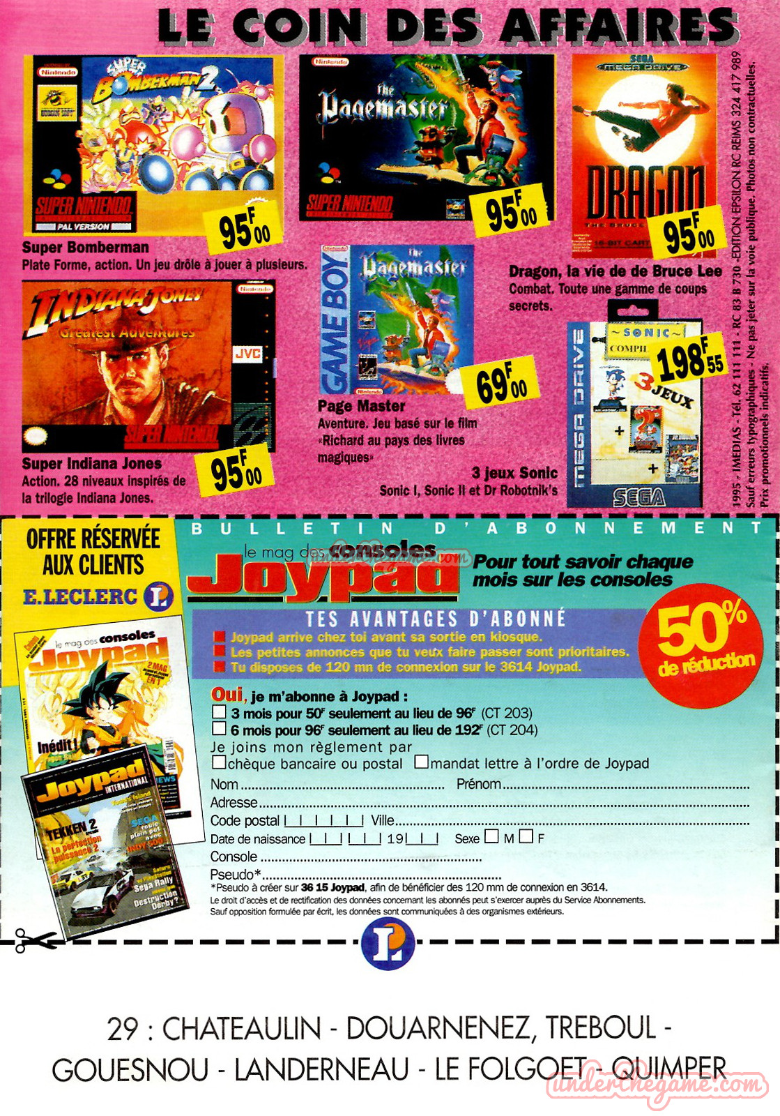 Titre : Jeux et consoles – Le Catalogue – Enseigne : Leclerc – Période : 22/11 au 09/12/1995 Langue : Français – Nombre de pages : 16 pages – Support : Catalogue – Format : A5
