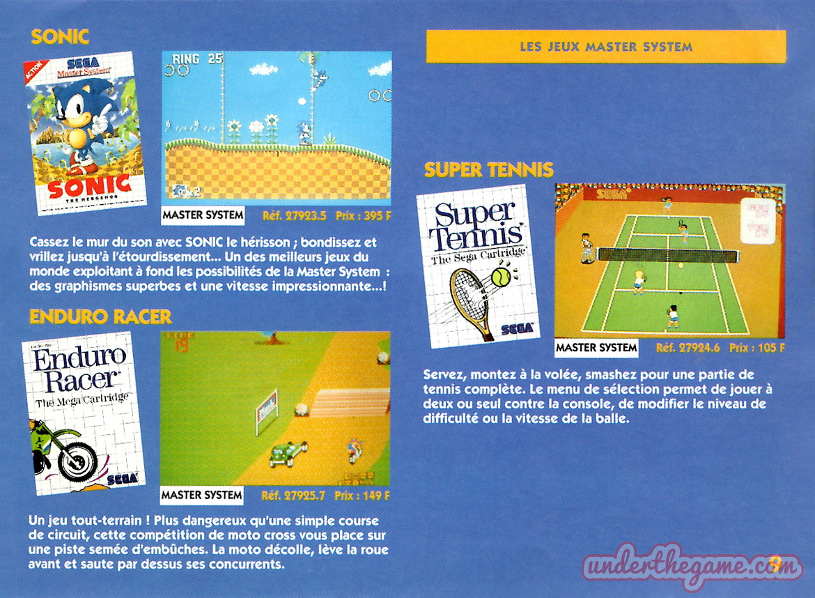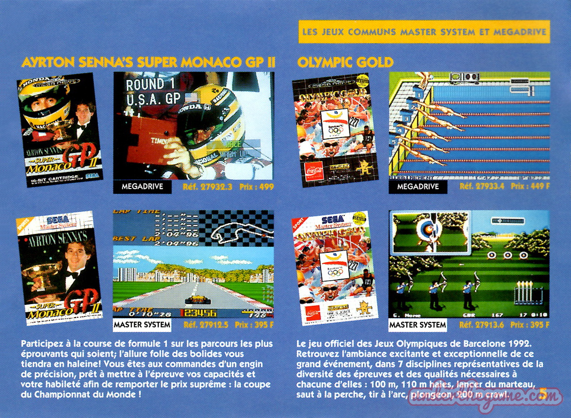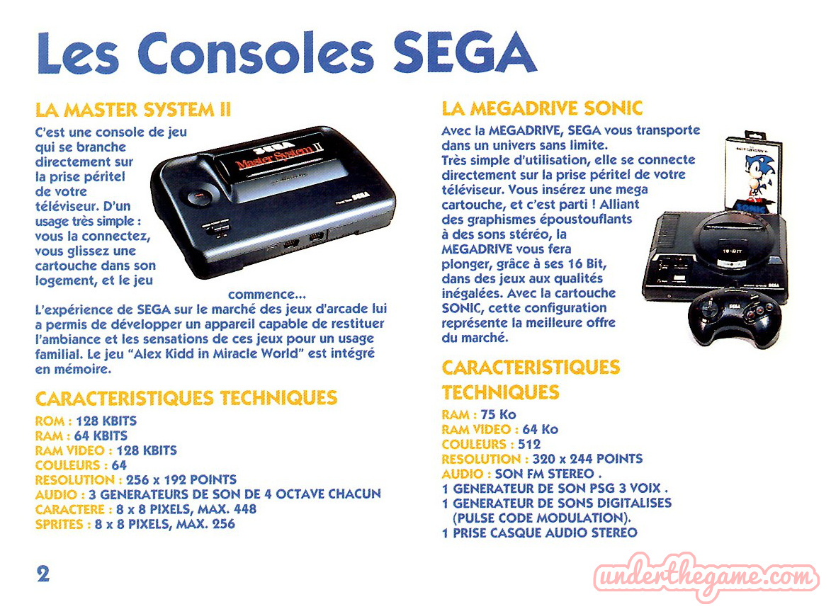 Titre : Les jeux Sega – Sujet : Jeux Master System et Mega Drive – Date : 1993 Langue : Français – Nombre de pages : 16 pages – Support : Catalogue – Dimensions : 15 x 11 cm