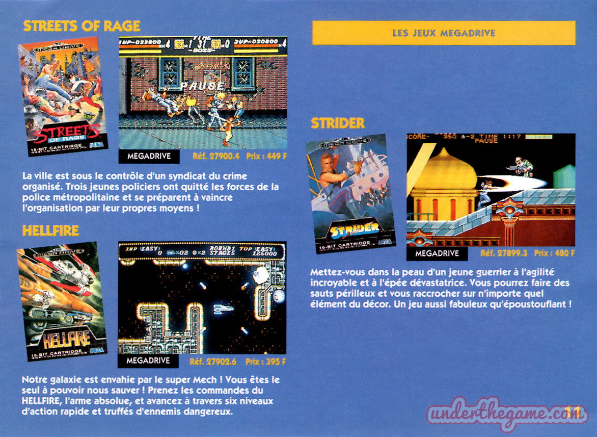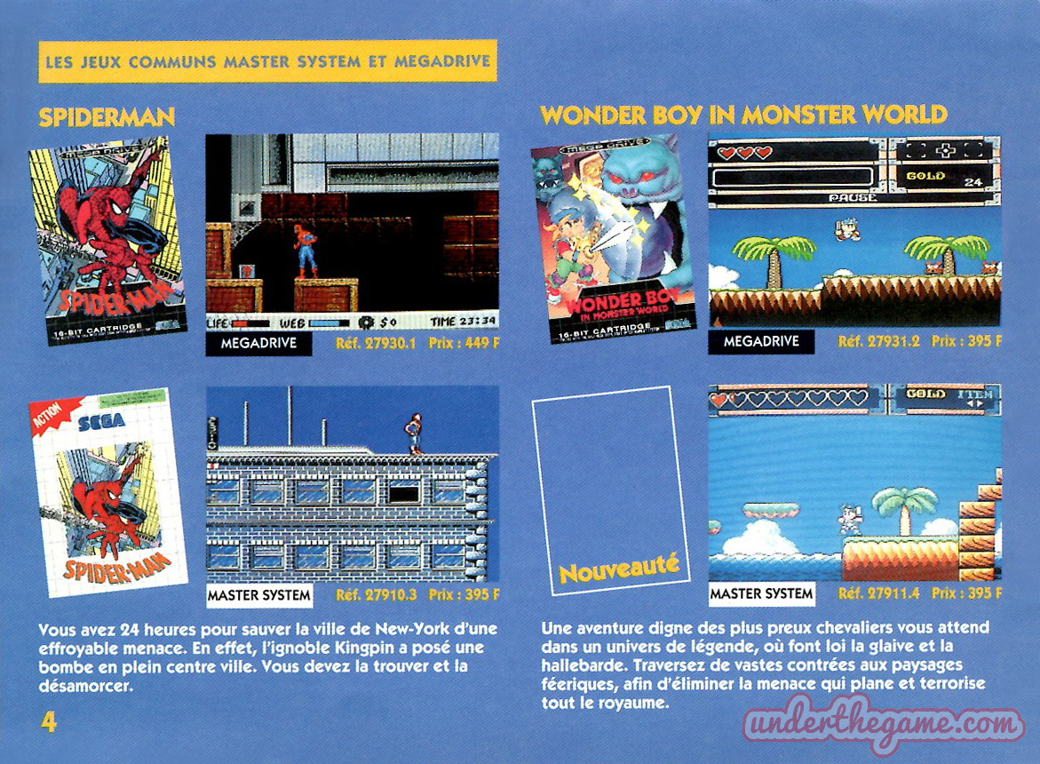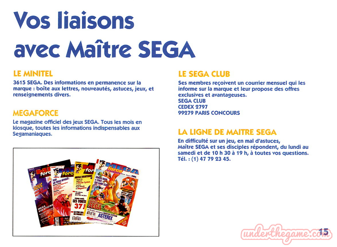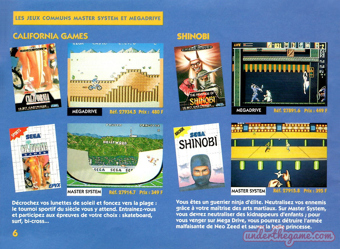 Titre : Les jeux Sega – Sujet : Jeux Master System et Mega Drive – Date : 1993 Langue : Français – Nombre de pages : 16 pages – Support : Catalogue – Dimensions : 15 x 11 cm
