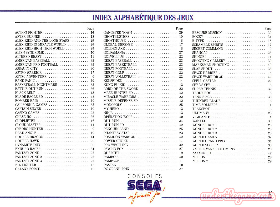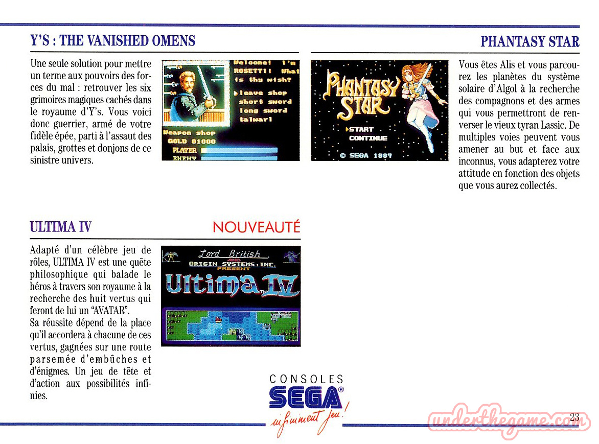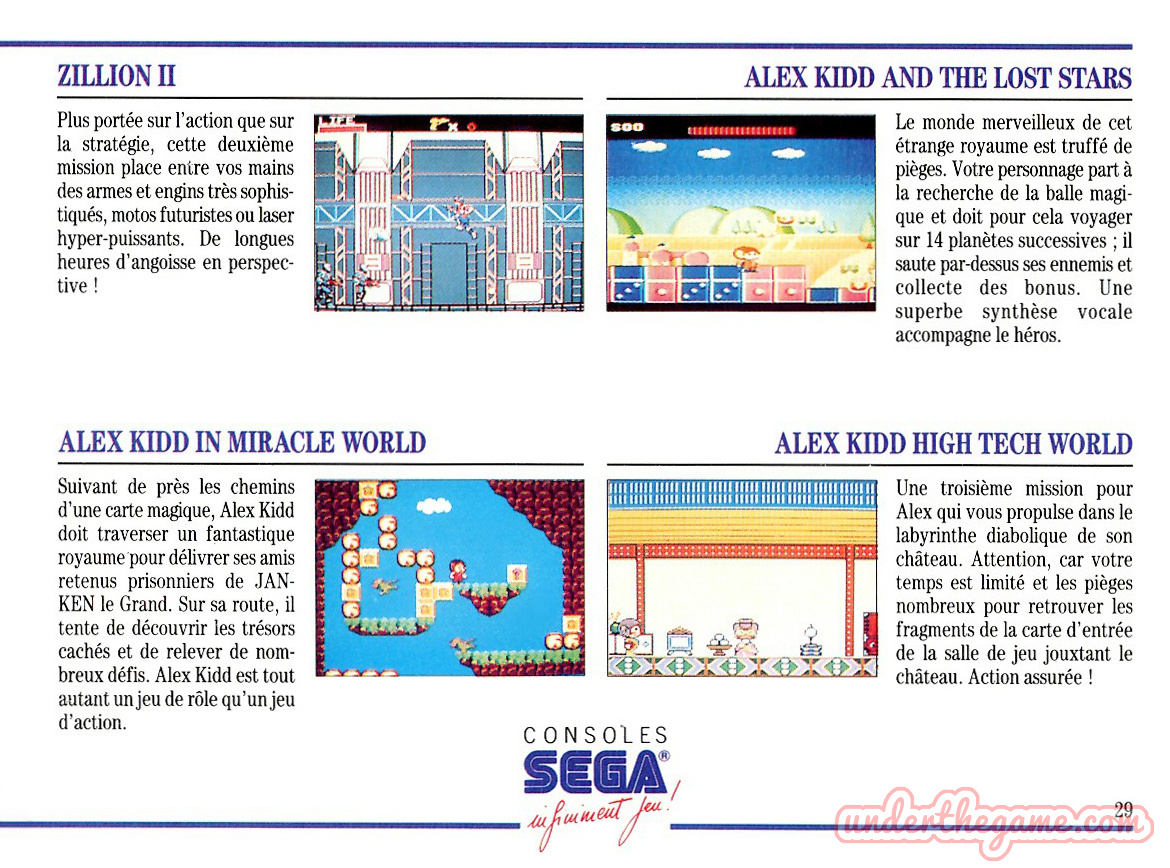 Titre : Consoles Sega – Infiniment Jeu ! – Sujet : Jeux Sega Master System – Date : 1990 Langue : Français – Nombre de pages : 48 pages – Support : Catalogue – Dimensions : 15 x 11 cm