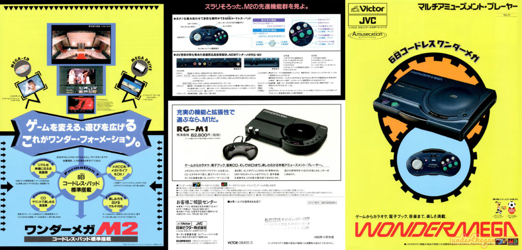 Console : Wondermega RG-M1 / RG-M2 – Fabricants : Sega, Victor et JVC – Date : 1993 Langue : Japonais – Support : Dépliant – Dimensions : 63 x 29,7 cm (déplié) / A4 (plié)